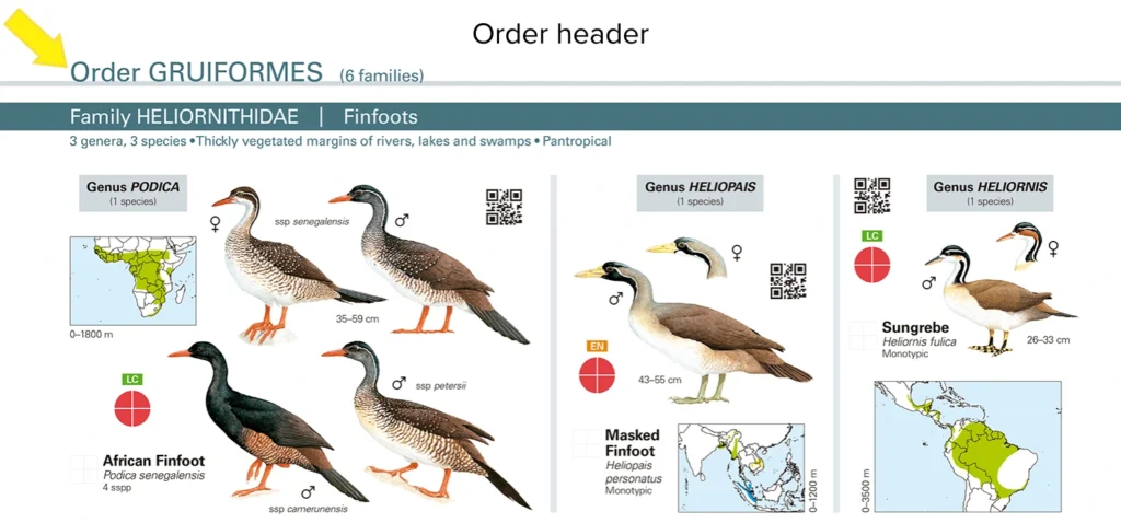 However, there are a number of differences between All the Birds of the World and the Illustrated Checklist in two volumes. An obvious one is that the current book is a single volume and its price is less than a quarter of that of the Checklist set. We hope it will be more accessible to many more people for whom the Checklist was perhaps too technical and not so affordable. Also, the more expert readers will find that this new work includes interesting new features not found in the previous works, notably the comparison of the taxonomic treatment given to each form by the four major world checklists.