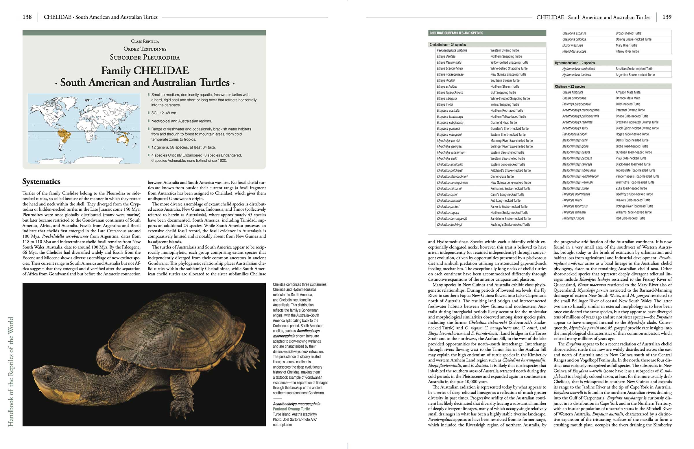 - Family Chelidae (South American and Australian Side-necked Turtles) – Arthur Georges, Deborah Bower, Carla Eisemberg